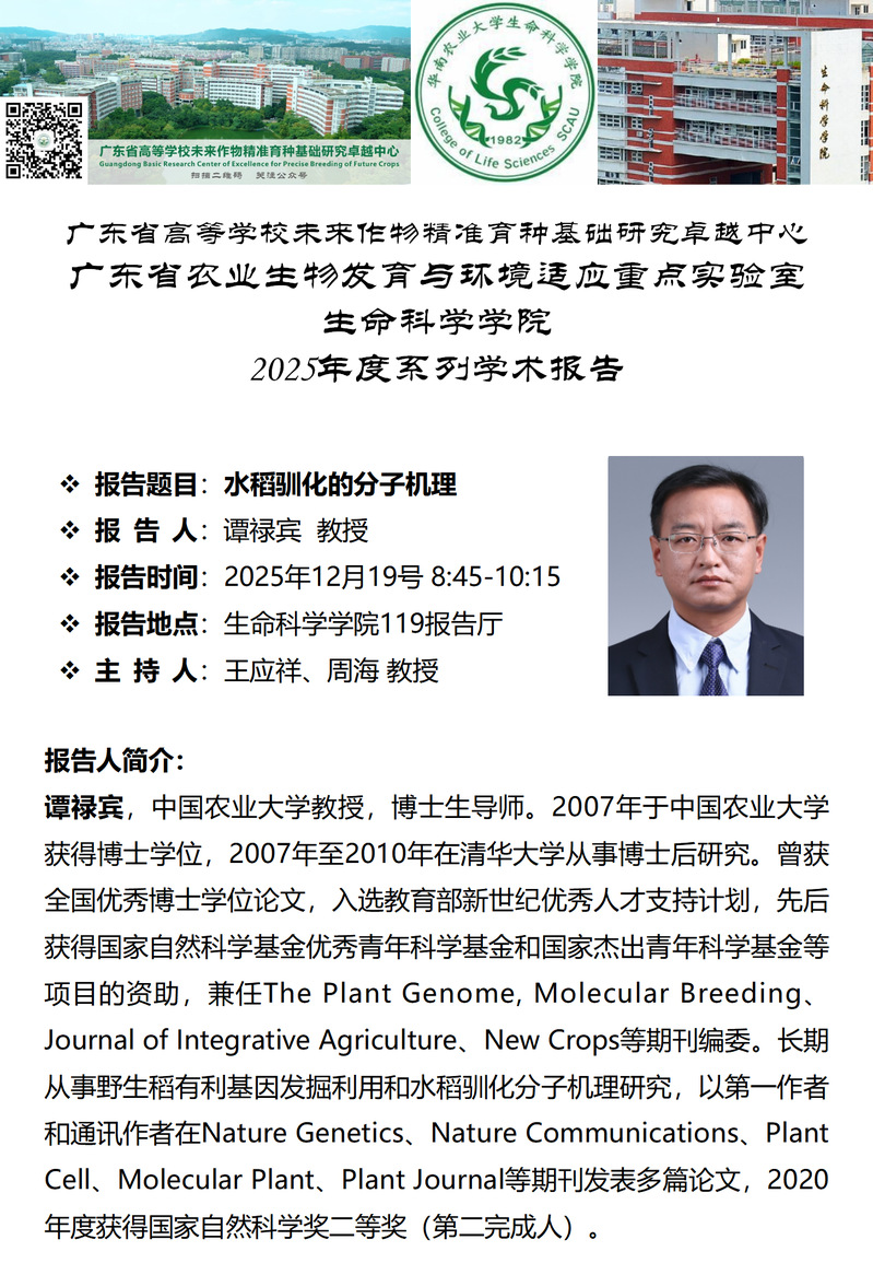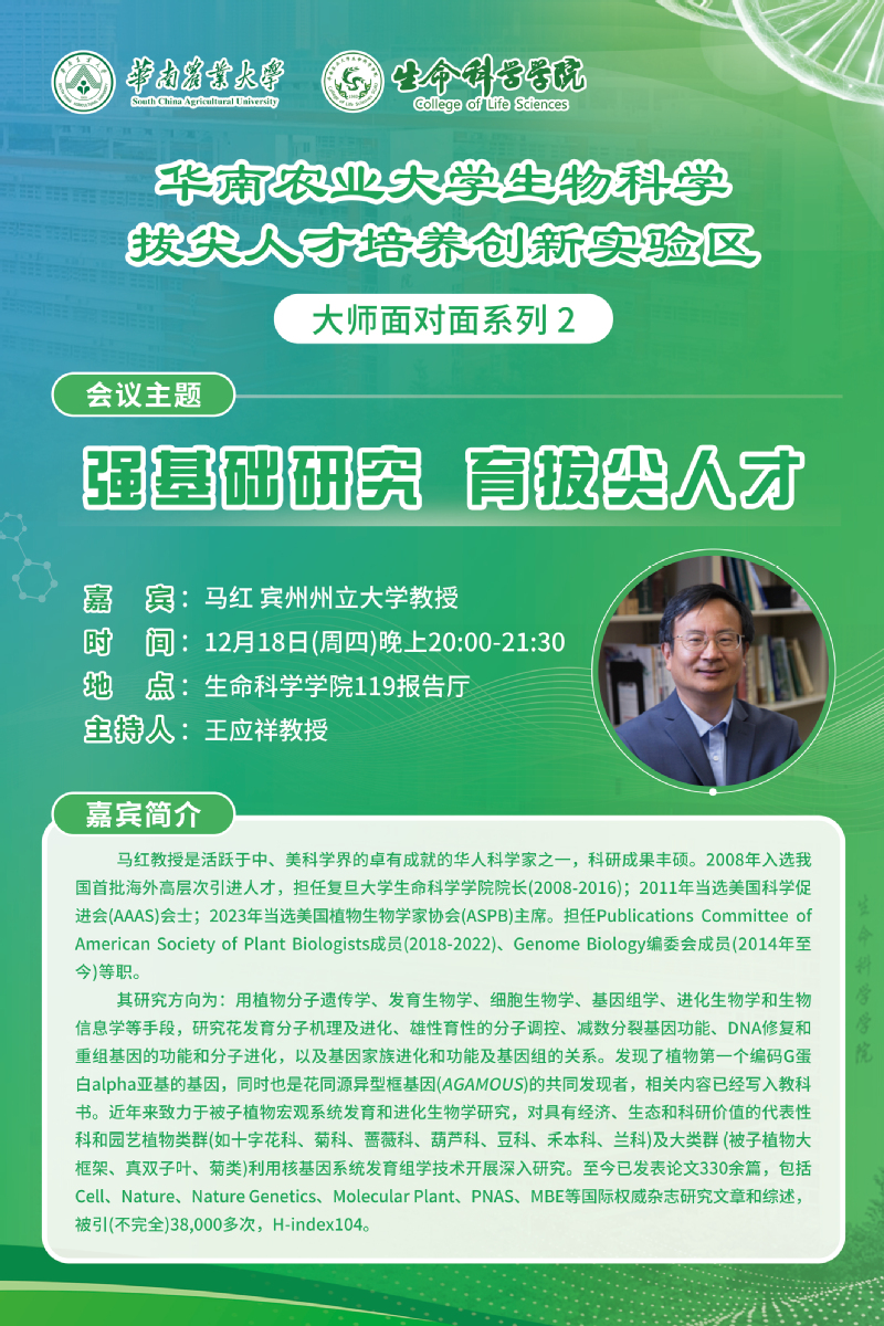 华南农业大学生物科学拔尖人才培养创新实验区举办大师讲座:回顾展望,共话科研创新之路