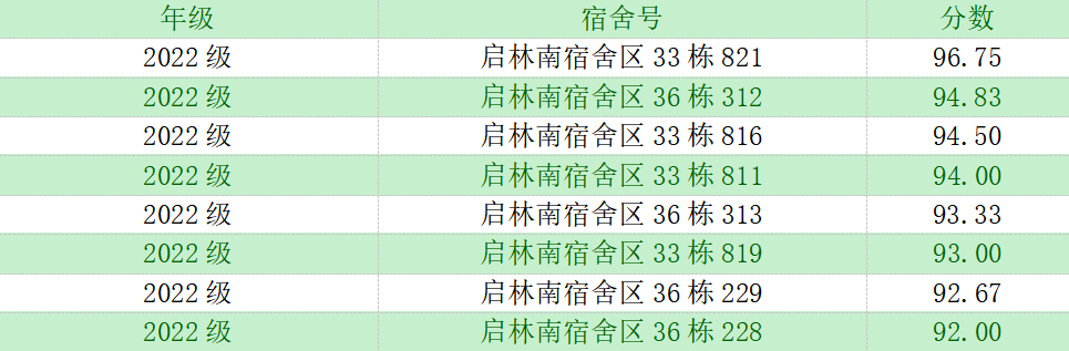2024-2025学年第二学期4月7日,生命科学学院宿舍检查人员对全院的宿舍卫生情况进行检查。宿舍检查结果如下: