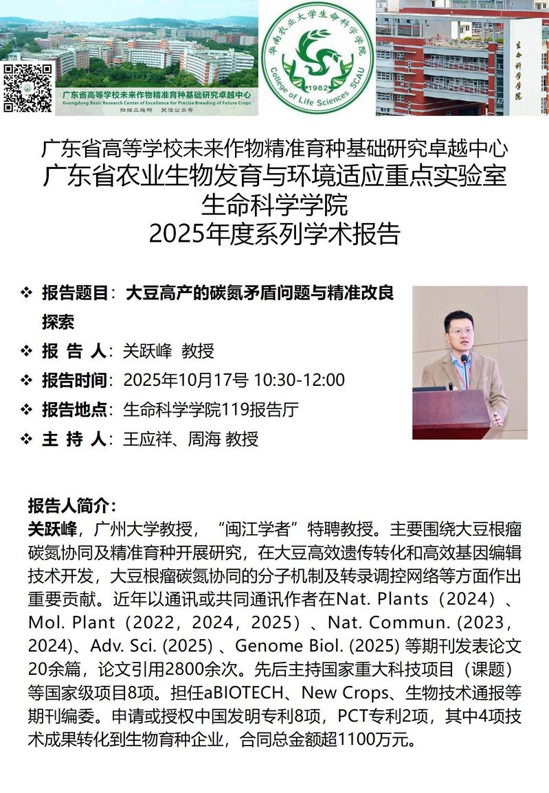 生命科学学院特邀报告——大豆高产的碳氮矛盾问题与精准改良探索