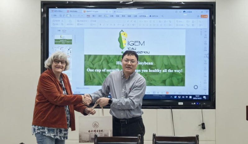 学术报告结束后,Martin教授应王应祥院长邀请,前往生命科学学院213会议室,听取了学院即将参加国际基因工程机器大赛(iGEM)的学生团队项目汇报。她对团队的研究思路和实验设计给予肯定,并从科学问题聚焦、实验数据完善、成果转化潜力等方面提出建设性改进意见,为学生团队备赛提供了重要指导。交流尾声,王应祥院长代表学院向Martin教授赠送纪念品,以感谢其为师生带来的前沿学术分享与悉心指导。