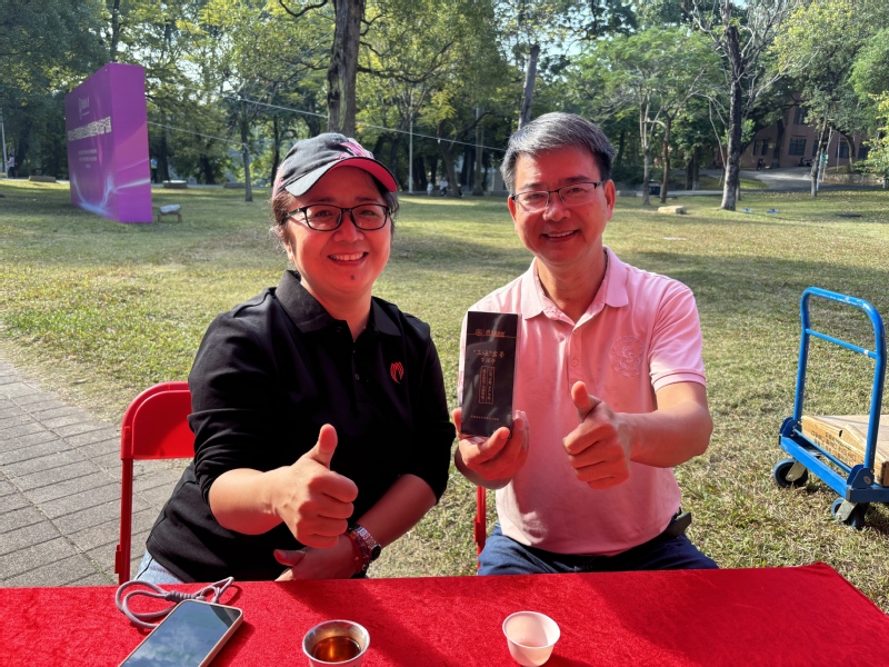 1989级农业教育专业廖志彪校友和1985级植物生理生化专业苏保荣校友共同开发的太空莲植物酸奶,也亮相华农优品·校友企业产品展。同时,廖志彪校友作为表演嘉宾,在紫荆音乐会上演唱原创歌曲《华农酸奶》,引起大家共鸣。