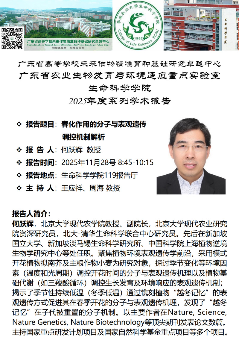 生命科学学院特邀报告——春化作用的分子与表观遗传调控机制解析