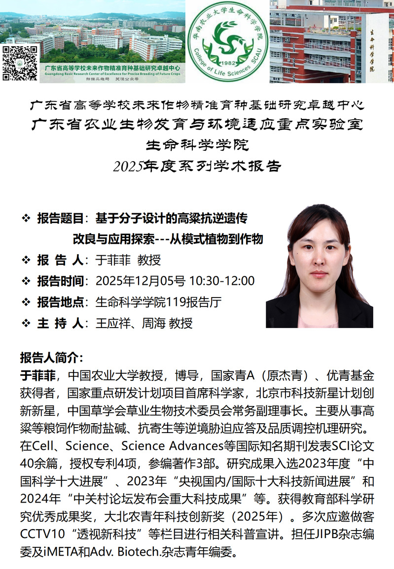 生命科学学院特邀报告——基于分子设计的高粱抗逆遗传改良与应用探索---从模式植物到作物