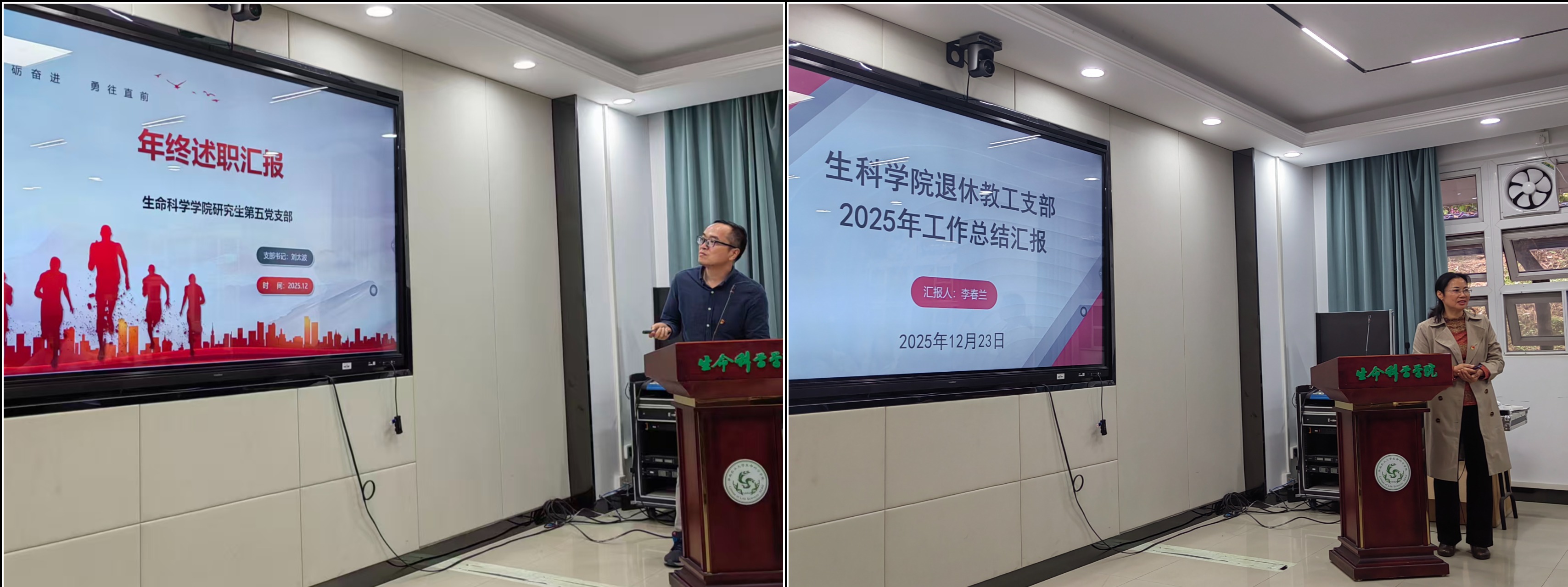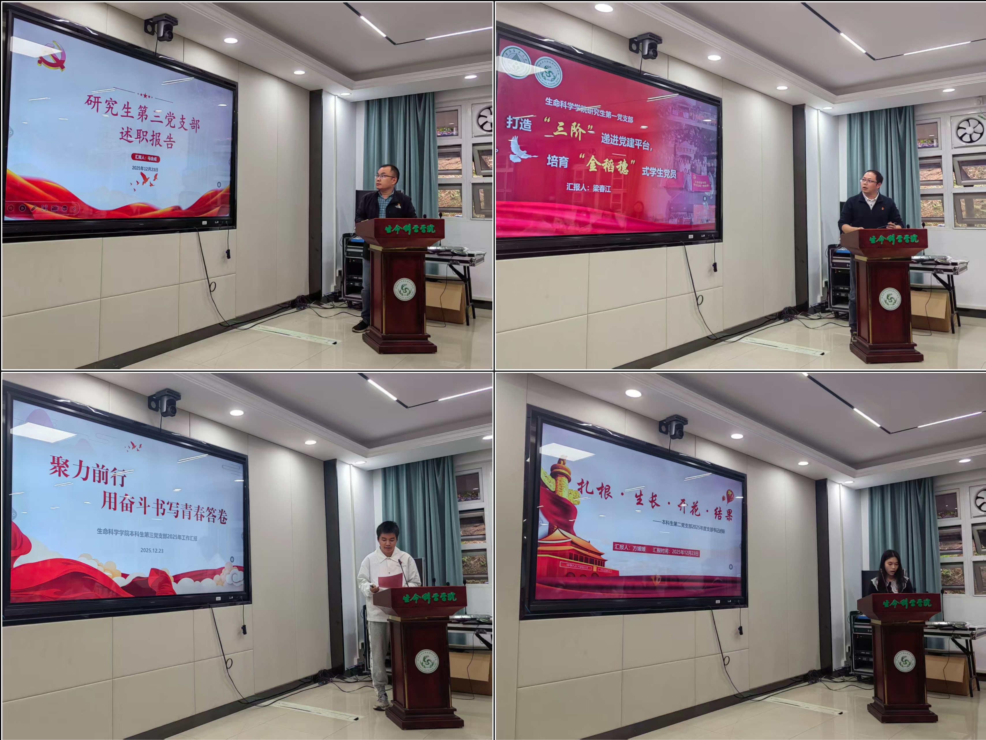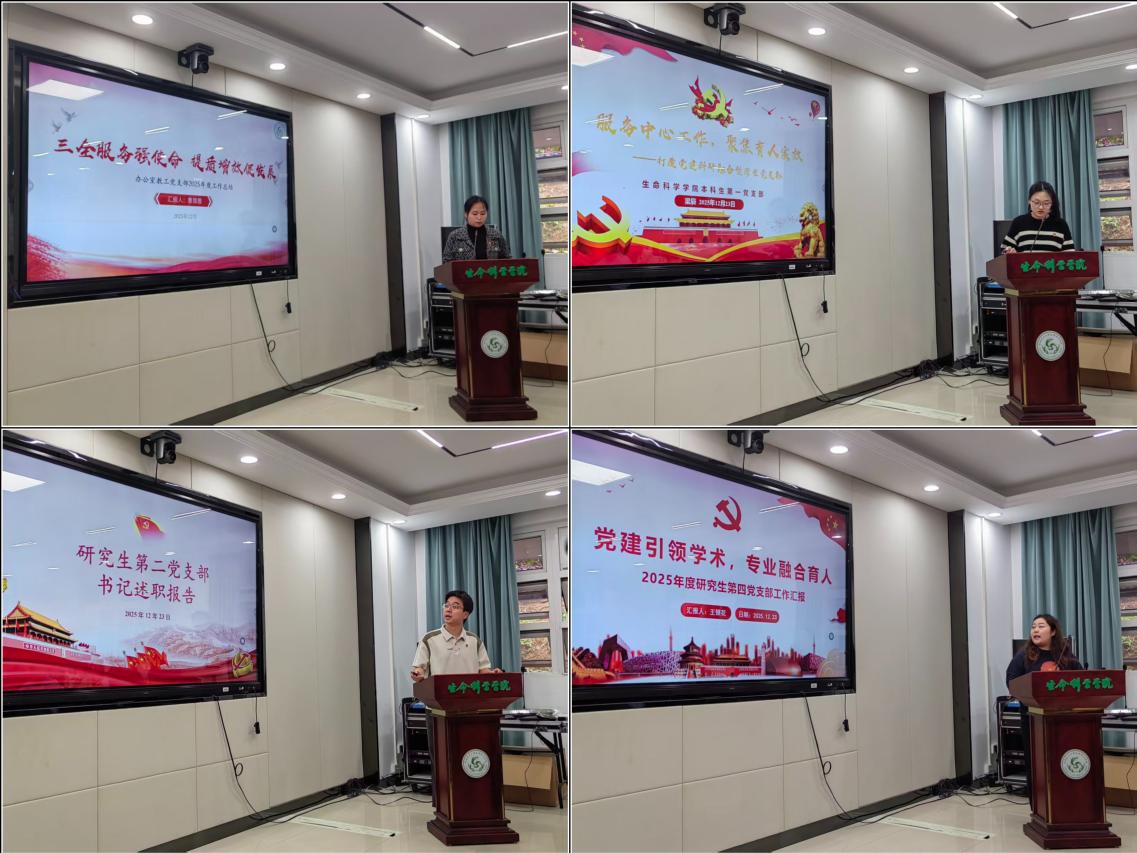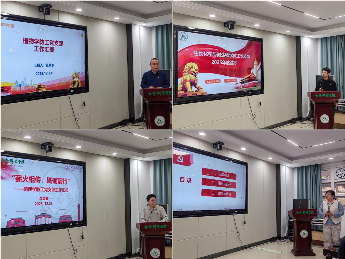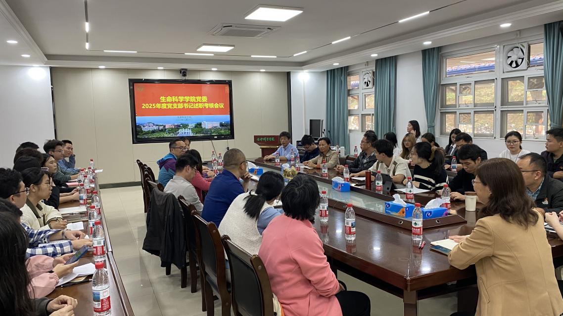 12月23日下午,生命科学学院党委在院楼213会议室召开2025年度党支部书记述职汇报会。学院党委书记吕剑红主持会议,党委副书记安娜、党委委员张荣京、张雪莲,14个师生党支部书记、支委参加会议。