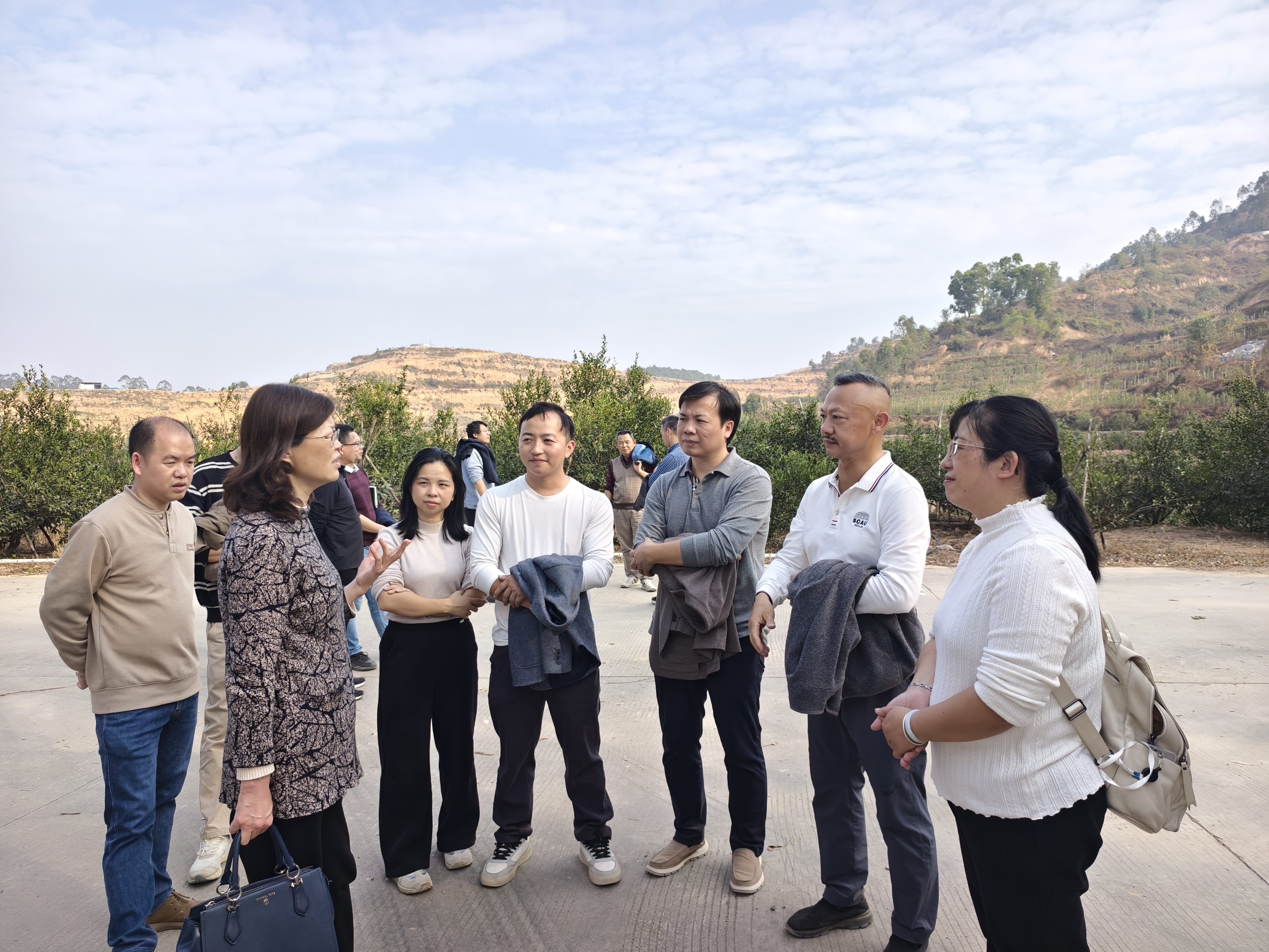 学院还组织乡村振兴专家服务团参观华农陈皮产业学院茶枝柑种植基地、和润柑盛生物科技有限公司生产基地等,问诊江门新会当地农业产业发展状况,为基地种植茶枝柑、生产新会陈皮提供科技支持。学院植物学系白玫教授专门为茶枝柑种植企业负责人、农户进行专门讲解,深入交流探讨新会地区道地性广陈皮科学化种植和培育。