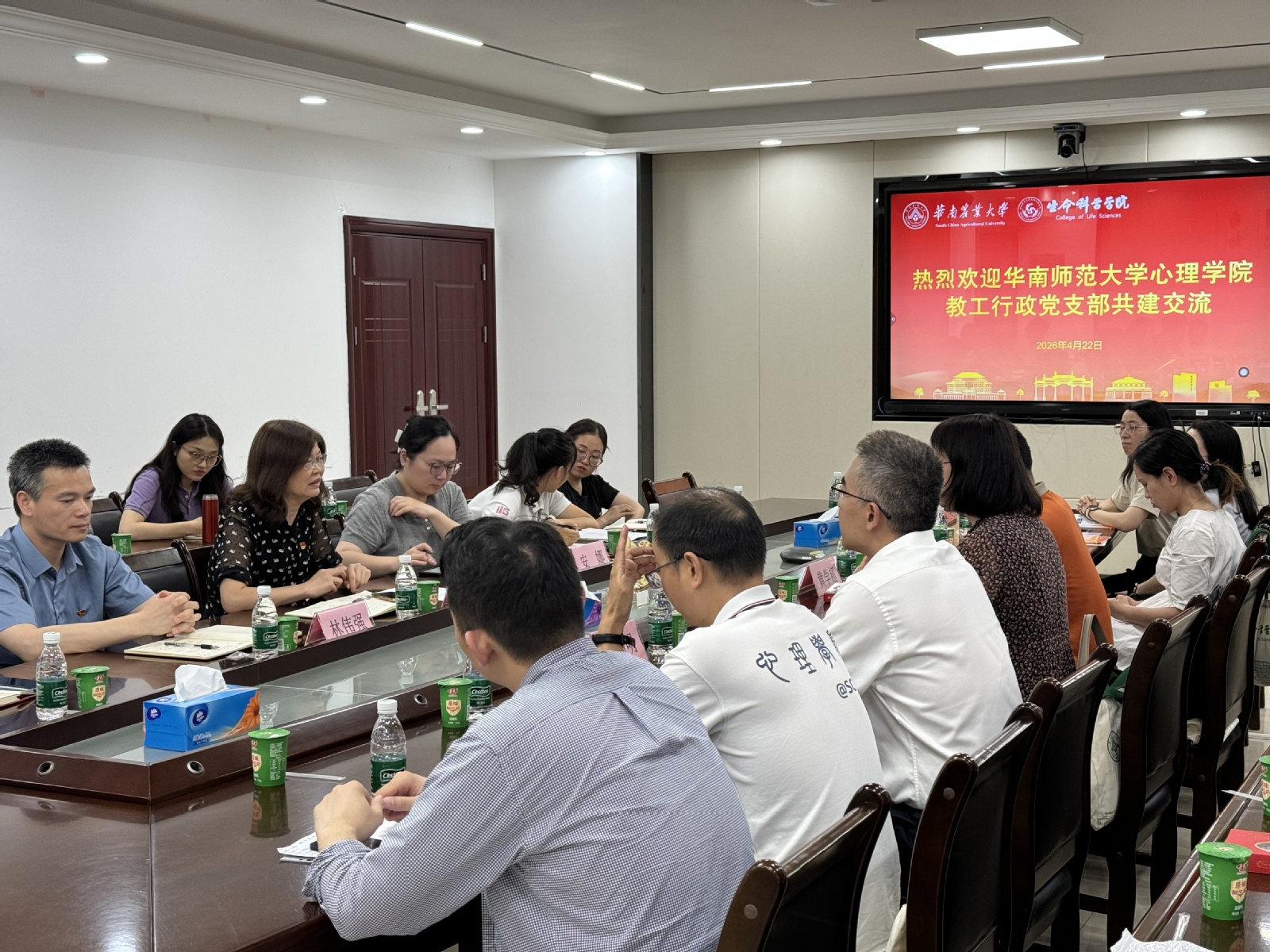 为深入推进基层党组织标准化规范化建设,深化党建引领作用,加强党支部之间的沟通联动、经验互鉴,4月23日下午,我院办公室教工党支部与华南师范大学心理学院教工行政党支部联合开展党支部共建交流活动,双方党员代表参加本次活动。活动由学院办公室教工党支部书记曹茜茜主持。