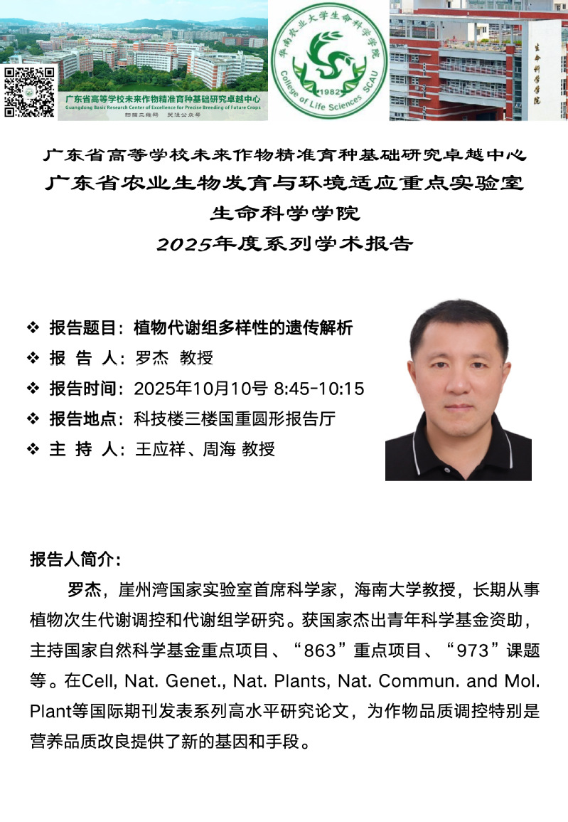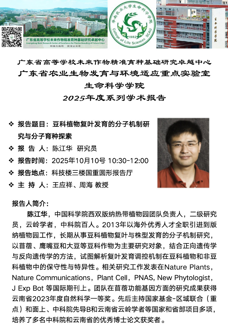 华南农业大学115周年校庆“学术华农”系列活动之500第四届“紫荆国际青年学者”论坛生命科学学院分论坛学术报告