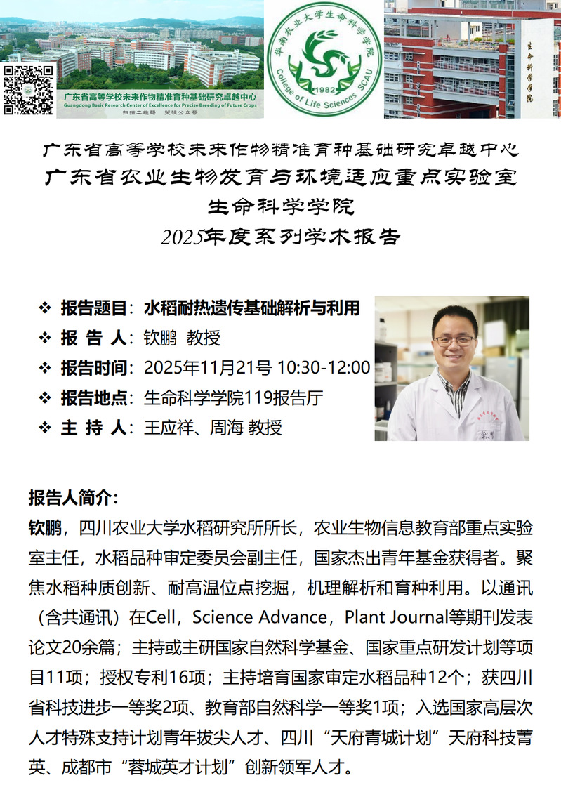 生命科学学院特邀报告——水稻耐热遗传基础解析与利用