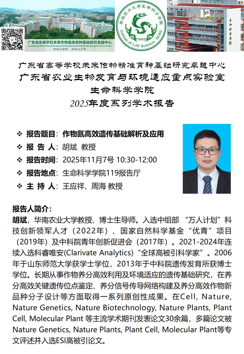 生命科学学院特邀报告——作物氮高效遗传基础解析及应用